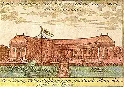 Im Jahr 1749 stellte der preußische König Friedrich II. das sogenannte Orangerie-Haus am Lustgarten, das seit 1713 nicht mehr für seinen ursprünglichen Zweck benötigt wurde, als Ergänzung für den bisherigen am Spreegraben bestehenden alten Packhof, der zu eng geworden war, zur Verfügung. Zum Emporheben der Waren aus den Schiffen, die auf einem Kommunikationsgraben von der Spree aus in den Hafen einfahren konnten, wurde am Kai ein hölzerner Drehkran installiert. Diese Anlage wurde zur Unterscheidung vom Alten Packhof nun „Neuer Packhof“ genannt.