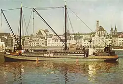 | 22 | Innungshaus der Fischergilde | Das Gebäude gehörte lange als Hinterhaus zum Grundstück Altes Fischerufer 21 und kam später zur Nummer 22. Wann es Eigentum der Fischerinnung wurde, ist unklar. Zumindest gehörte es der Innung jedoch bereits vor dem Jahr 1631. Vermutlich wurde das Haus bei der Zerstörung Magdeburgs im Jahr 1631 durch die Elbnähe verschont. 1639 wurde es erneuert. In der Zeit um 1823 gehörte das Haus dem Magistrat der Stadt. 1942/1943 war der Baumeister R. Spangenberg. 1871 war auf dem Hof des Hauses ein Standbild des Heiligen Petrus angebracht. Unter dem Standbild befand sich die Inschrift Zum Fischer Güldehaus 1639.[5] In den 1930er Jahren befand sich das Standbild dann vorn am Haus. Der Verbleib der Statue nach 1945 ist unklar, vermutlich wurde sie zerstört. | ||