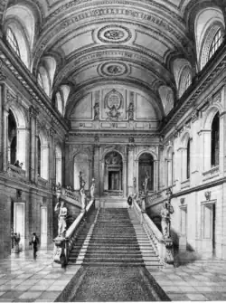 Im Inneren gliederte Hoffmann den Bau in einen Bühnen- und einen Zuschauerteil. Dabei bildet der Zuschauerteil das Zentrum des Gebäudes, ihm sind ein großes Treppenhaus und ein Foyer vorgelagert. Vier Lichthöfe gliedern das Gebäude weiter. Der Zentraleingang sollte sich am Königsplatz befinden, durch diesen sollte man in eine quer angelegte Vorhalle gelangen, die die gesamte Breite des Gebäudes einnehmen sollte. Über einige Stufen gelangte man in das zentrale Treppenhaus oder in die Seitengänge. Eine breite Treppe im zentralen Treppenraum sowie weitere Treppen in den seitlichen Gängen führen in den ersten Rang, zwei Treppen hinter der Haupthalle in das Oberparkett. Das Auditorium sollte aus vier Rängen bestehen, überspannt durch zusätzliche Sitzreihen in der Art eines Amphitheaters, architektonisch herausgestellt wurden die Festloge sowie die dreigeteilten Proszeniumslogen. Ein großes Foyer sollte oberhalb der Eingangshalle für die Pausengestaltung eingerichtet werden, weitere Aufenthaltsräume befanden sich im gesamten Gebäude.