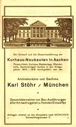 - ↑ Aktiengesellschaft für Kur- und Badebetrieb der Stadt Aachen: Rheuma-Bad Aachen. Graphische Kunstanstalt Geulen & Nebe, Aachen, 1918, S.?.