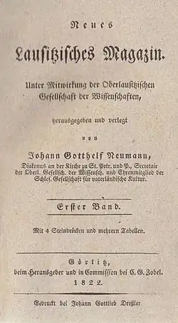 - ↑ Informationen zur „Vaterländischen Monatsschrift zunächst für beide Lausitzen, auf das Jahr 1813“