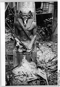 1939 wurden die Sammlungen geschlossen, eine Vielzahl der Artefakte ausgelagert und gesichert. Kurz darauf begannen die Zerstörungen im Zweiten Weltkrieg. Bei alliierten Luftangriffen am 22./23. November 1943 brannte das zentrale Treppenhaus mit den Wandfresken zur Geschichte der Menschheit aus. Im Februar 1945 zerstörten Bomben den Nordwestflügel sowie den Übergang zum Alten Museum und beschädigten den Südwestflügel sowie den Südostrisalit. In der Schlacht um Berlin zwischen den verbliebenen Wehrmachts- und SS-Einheiten und den sowjetischen Streitkräften Ende April 1945 kam es zu weiteren Zerstörungen.