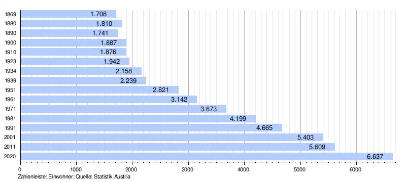 1991 hatte die Gemeinde laut Volkszählung 4.665 Einwohner, 2001 dann 5.615 Einwohner (davon 5.402 Hauptwohnsitze und 213 Nebenwohnsitze), 2011 lebten 5652 Menschen in der Gemeinde.