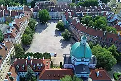 Der Marktplatz wurde an der parallel zur Weichsel verlaufenden Handelsstraße nördlich der Warschauer Altstadt angelegt.