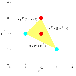 ein Polynom in zwei Variablen x und y. Dann ist das Newtonpolygon von P die konvexe Hülle von