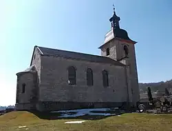 - Die heutige Kirche ist ein neuromanischer Bau von 1845. Ihr Westturm ist älteren Ursprungs. An der Außenseite der östlichen Apsis befindet sich ein Schriftstein vom spätgotischen Vorgängerbau.