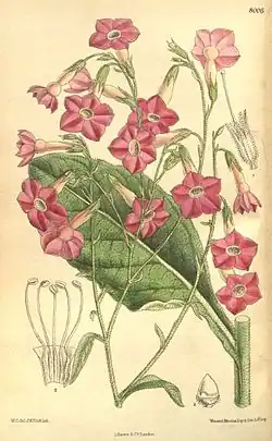 - ↑ James J. Clarkson et al.: Phylogenetic relationships in Nicotiana (Solanaceae) inferred from multiple plastid DNA regions. In: Molecular Phylogenetics and Evolution, Band 33, 2004. Seiten 75–90.