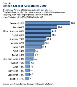 1. American Community Survey, self-reported ancestry (2015) (Memento des Originals vom 12. Februar 2020 im Webarchiv archive.today)  Info: Der Archivlink wurde automatisch eingesetzt und noch nicht geprüft. Bitte prüfe Original- und Archivlink gemäß Anleitung und entferne dann diesen Hinweis.@1@2Vorlage:Webachiv/IABot/factfinder.census.gov