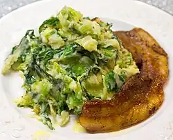 Bodenständige Eintöpfe sind in den Niederlanden sehr beliebt und gehen auf die bäuerliche Tradition der Niederlande zurück.[2] Dabei handelt es sich in der Regel um deftige Eintöpfe aus Kartoffeln und Gemüsen, die für die niederländische Landwirtschaft typisch sind. Diese Gerichte sind vor allem „Wintergerichte“, die bei kaltem Wetter als deftige und sättigende Gerichte gegessen werden.[2] Das frühere Nationalgericht ist der Stamppot („Stampftopf“), eine gestampfte Mischung aus Kartoffeln und Gemüse. Häufig wird dabei Grünkohl (niederländisch Boerenkool, wörtlich: „Bauernkohl“) verwendet. In der Regel wird Stamppot mit heißer Rookworst, einer geräucherten Schinkenwurst, oder Speck und angebratenen Zwiebeln gegessen. Rookworst wird auch häufig mit Sauerkraut serviert. Eine andere Variante von Stamppot ist der Hutspot (von ,husselen'= ,mischen'), ebenfalls eine gestampfte Mischung, diesmal aus Kartoffeln, Zwiebeln und Karotten. Er wird mit kleingehacktem, angebratenem Speck oder Rindfleisch (klapstuck) gegessen und geht der Legende nach auf die Befreiung nach der Belagerung der Stadt Leiden durch die Spanier im 16. Jahrhundert zurück.[2] Wahlweise wird als Gemüse auch Endivie verwendet.