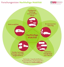 Projekte und Themen werden – ausgerichtet an der Vision „Nachhaltige Mobilität“ – in fünf wissenschaftlichen Forschungsfeldern bearbeitet: