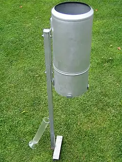 Es existiert auch eine kleinere Variante mit einer Auffangfläche von 100 cm2 (ohne Sammelkanne); im Gebirge werden auch Niederschlagsmesser mit einer Auffangfläche von 500 cm² verwendet.
