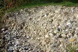 Sedimente der Niederterrasse an der Böschung eines Baggersees bei Rastatt