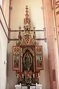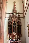 Der Hauptaltar und die beiden Seitenaltäre wurden 1896 von Clemens Raffeiner nach Entwürfen von Pater Johann Maria Reiter gefertigt.