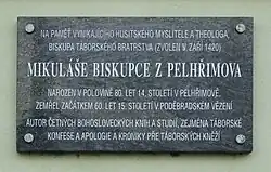 - ↑ Josef Bartoš, Stanislava Kovářová, Miloš Trapl (Hrsg.): Osobnosti českých dějin. Alda, Olomouc (Olmütz) 1995, ISBN 80-85600-39-0, Kapitel Biskupec z Pelhřimova Mikuláš, S. 23.