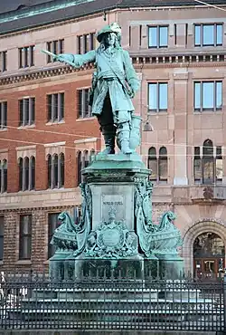 Am 1. Juni wurde die schwedische Flotte abermals, diesmal bei Öland, geschlagen. Im folgenden Jahr besiegte Juel in der Nähe von Warnemünde den schwedischen Admiral Sjöblad und lieferte am 1. Juli 1677 die denkwürdige Seeschlacht in der Køge Bugt, wo die 36 Schiffe starke schwedische Flotte von den 25 der dänischen geschlagen wurde. 1683 wurde er Chef-Admiral.[1] Niels Juel starb am 8. April 1697 in seiner Residenz in Kopenhagen und fand seine letzte Ruhestätte in der Holmens-Kirke. Er war seit 1661 mit Margrethe Ulfeldt verheiratet.[2] Aus der Ehe gingen vier Kinder hervor.