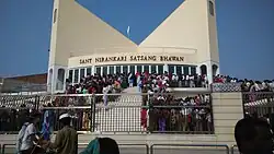 Die Gottesdienststätten werden als Satsang Bhawan („Versammlungshalle“) bezeichnet und stehen allen Menschen unabhängig von Hautfarbe, Kaste oder Religion offen. Auf einer Tribüne steht ein weiß gepolsterter Sessel (weiß ist die Symbolfarbe der Nirankaris), der von einem Mitglied der Gläubigen als Repräsentant des Sad Guru eingenommen wird. Dieser erteilt den Gläubigen in Vertretung des Gurus den Segen und hält eine Predigt. Da nach Ansicht der Nirankaris der Sad Guru allgegenwärtig ist, wird seinem Repräsentanten dieselbe Ehrerbietung erwiesen (Verbeugung bzw. Niederwerfung), wie dem Sad Guru selbst.