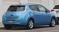 Der Nissan Leaf (englisch für „Blatt“; LEAF auch als Backronym Leading Environmentally-friendly Affordable Family car interpretiert) ist ein Elektroauto des japanischen Automobilherstellers Nissan, das im August 2009 in Yokohama der Öffentlichkeit vorgestellt wurde und seit Dezember 2010 verkauft wird. Der Leaf ist das erste Großserien-Elektroauto, das von Anfang an für diesen Antrieb konzipiert wurde.[1] Er war zeitweise in 51 Ländern erhältlich und wurde bis September 2021 519.000 mal gebaut[2][3][4][5], im Juli 2023 wurde die Marke von 650.000 überschritten[6]. Der Leaf war bis Ende 2019 das weltweit meistverkaufte Elektrofahrzeug und wurde vom Tesla Model 3 abgelöst.[7] Das Fahrzeug wird in Japan und den USA produziert und wurde zwischen 2015 und 2018 als Venucia e30 in China hergestellt und vermarktet. Für den europäischen Markt endete die Produktion in Großbritannien im März 2024.[8]