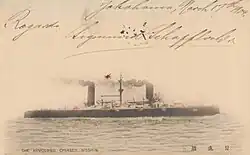- ↑ The Arrival of the Nisshin and Kasuga. In: The Russo-Japanese War Fully Illustrated. Nr. 1. Kinkodo Publishing Co. & Z. P. Maruya & Co., Tokyo 1904, S. 98–99 (Google Books).