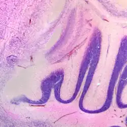 Die Nissl-Färbung, benannt nach Franz Nissl, ist eine histologische Färbetechnik, die insbesondere zur Darstellung von Nervengewebe verwendet wird. Dazu werden histologische Schnitte mit einem Farbstoff wie Kresylviolett, Toluidinblau oder Thionin versetzt. Diese Farbstoffe binden sich an basophile Verbindungen wie RNA und DNA und färben daher die Zellkerne und Ribosomen blau oder violett.[1][2]