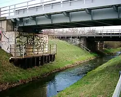 Markierung an der Pankebrücke der Blankenburger Bahnhofstraße als Hauptweg 5 (auch Pankeweg)