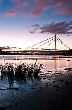 | Konstruktion | Schrägseilbrücke + Balkenbrücke | |