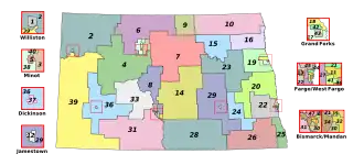 Die Gesetzgebung liegt beim Parlament, der North Dakota Legislative Assembly, das aus zwei Kammern besteht: dem Senat und dem Repräsentantenhaus. Der Staat ist in 47 Wahlkreise (legislative districts) aufgeteilt, von denen jeder jeweils einen Senator und zwei Abgeordnete des Repräsentantenhauses wählt. Die Senatoren werden alle vier Jahre und die Mitglieder des Repräsentantenhauses jeweils alle zwei Jahre neu gewählt.