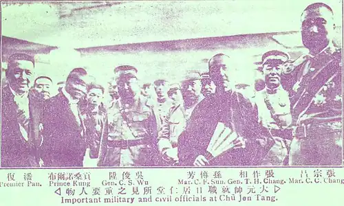 - ↑ a b Donald A. Jordan: The Northern Expedition: China's National Revolution of 1926–1928. Honolulu: University Press of Hawaii. 1976. S. 132. ISBN 978-0-8248-0352-0.