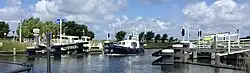 Eine Besonderheit am Nordhollandkanal sind die hier waagerecht beweglichen Schwimmbrücken, niederländisch Floßbrücke. Als der Kanal gebaut wurde, war man noch nicht in der Lage, feste Brücken mit großen Spannweiten zu bauen[2].