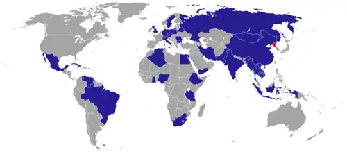 - ↑ DPRK Diplomatic Relations. (PDF; 872 kB) The National Comitee on North Korea, archiviert vom (nicht mehr online verfügbar) am 31. März 2024; abgerufen am 11. Juli 2024 (englisch).