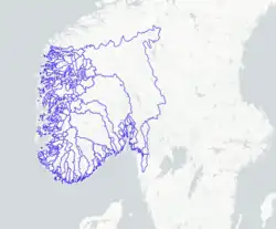 - ↑ Astrid Voksø: Nedbørfelt (REGINE) - NVE. NVE, abgerufen am 20. Februar 2021 (Einzugsgebiete in Norwegen auf der Karte 'Nedborfelt_NedborfeltTilHav').