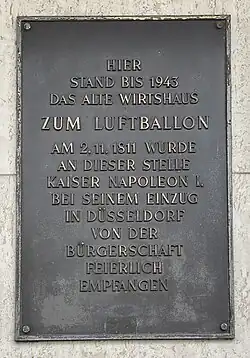 Die Nordstraße war seit alters her ein Teil der Landstraße von Düsseldorf nach Norden und Nordosten, insbesondere nach Ratingen, Wesel und Münster. Ihr erster Ausbau als Chaussee erfolgte zwischen 1767 und 1793. An der heutigen Ecke Nordstraße/Fischerstraße stand das Wirtshaus „Zum Luftballon“, das seinen Namen von einem naheliegenden Freigelände erhalten hatte, das Luftfahrtpioniere zu Beginn des 19. Jahrhunderts für den Aufstieg von Heißluftballons nutzten.[1] Am 2. November 1811 wurde vor diesem Gebäude Kaiser Napoleon I., damals auch Regent des Großherzogtums Berg, von einer Eskorte feierlich empfangen und in die bergische Landeshauptstadt Düsseldorf geleitet. Die hier beginnende Kaiserstraße trägt noch heute seinen Titel.[2]