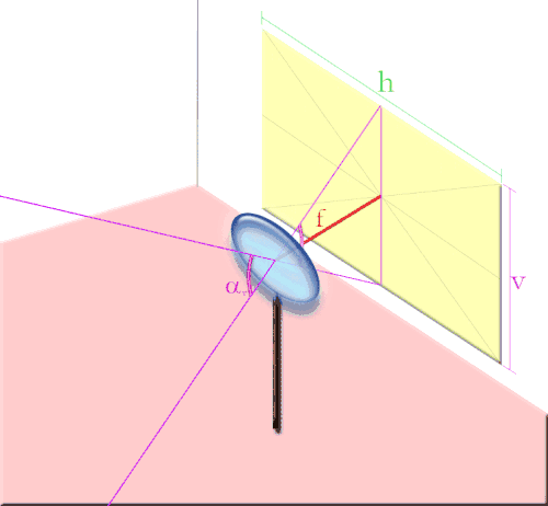 Die Richtung des jeweiligen Bildwinkels gegenüber der Horizontalen ist beim