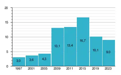 Wahlbeteiligung bei der Kirchenwahl seit 1997:[10]