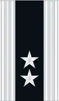 | Fenrik | Løytnant | Kapteinløytnant | Orlogskaptein | Kommandørkaptein | Kommandør | Flaggkommandør | Kontreadmiral | Viseadmiral | Admiral | |
