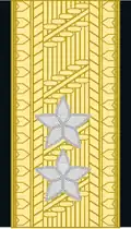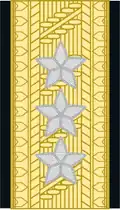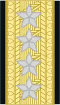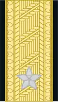 | Fenrik | Løytnant | Kaptein | Major | Oberstløytnant | Oberst | Brigadér | Generalmajor | Generalløytnant | General | |