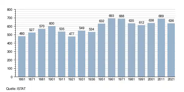 - ↑ Bilancio demografico e popolazione residente per sesso al 31 dicembre 2024. ISTAT. (Bevölkerungsstatistiken des Istituto Nazionale di Statistica, Stand 31. Dezember 2024).