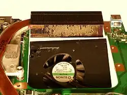 Viele Notebooks haben einen aktiven Prozessorkühler. Eine Heatpipe nimmt die Wärme der Leistungs-Bauelemente auf und leitet sie an einen Kühlkörper. Ein Lüfter bläst Luft durch Schlitze im Kühlkörper zum Abführen der Wärme aus dem Gehäuse. Verstopfen die Schlitze im Kühlkörper durch Staub und Schmutz, dann wird die Kühlung verschlechtert. Bei zu geringer Kühlleistung besteht die Gefahr der automatischen Drosselung des Prozessortakts oder Abschaltung, um Schädigung durch Überhitzung zu vermeiden. Durch regelmäßige Reinigung des Kühlkörpers kann dem vorgebeugt werden.