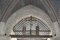 - Aus dem 16. Jahrhundert stammt auch die Kreuzigungsgruppe auf dem Triumphbalken.[4]
