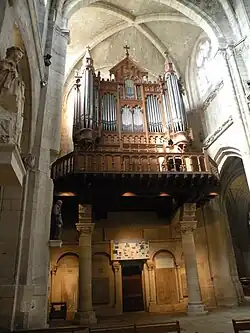 Die Orgel wurde 1903 von Charles Mutin errichtet, als Ersatz für ein Instrument der Orgelbauerfamilie Dallery. Im Zuge einer Restaurierung fügte der Orgelbauer Gutschenritter im Jahre 1959 vier Register im Récit hinzu. In den Jahren 2000–2003 wurde das Instrument von der Orgelbaufirma Manufacture Bretonne d’Orgues umfassend saniert. Es hat 27 Register auf zwei Manualwerken und Pedal; die Register des Pedals sind überwiegend Transmissionen und Extensionen von Registern der Manualwerke. Die Spieltrakturen sind mechanisch (mit Barker-Maschinen in der Grand Orgue), die Registertrakturen sind mechanisch, mit Ausnahme der Trakturen der vier Register von Gutschenritter, welche pneumatisch sind.[1]