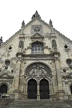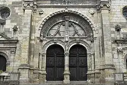 Das Hauptportal, ein doppeltes Rundbogenportal, wurde zwischen 1520 und 1550 geschaffen. Es wird von Pilastern eingefasst und besitzt holzgeschnitzte Türen mit Szenen aus dem Leben Marias. Auf der linken Seite sind die Vermählung Marias mit Joseph und die Verkündigung dargestellt, auf der rechten Seite die Heimsuchung und die Himmelfahrt Marias. Die Schnitzereien werden dem Bildhauer Guillaume Le Houx zugeschrieben, dessen Initialen MGLH man unter der rechten Lünette erkennen kann. Auf dem Trumeaupfeiler steht eine Madonna mit Kind. Auch die beiden Seitenportale werden von Pilastern mit Kapitellen, Ziergiebeln und Figurennischen unter Baldachinen gerahmt.