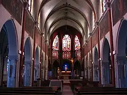 Der große Kreuzweg im Kirchenschiff stammt vom Ende des 19. Jahrhunderts. Die heutige Innenausmalung des Hauptschiffs wurde 1968 und der Marienkapelle 1969 geschaffen.[4] In dieser steht eine Marienstatue Unserer Lieben Frau vom heiligen Herzen, aus Carrara-Marmor, das Jesuskind zeigt sein Herz und weist auf seine Mutter. Neben der Marienkapelle liegt rechts der Eingang zur Krypta der Basilika.[3]