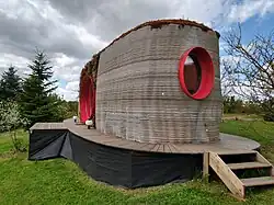 - Prvok, das 2020 vom Atelier Scoolpt und dem Budweiser Bildhauer Michal Trpák in Form eines Hausbootes gestaltete Gebäude mit einer Länge von 13,5 m und einer Höhe von 3,673 m wurde im 3D-Druck-Verfahren errichtet. Es besteht aus Beton und Holz mit einem begrünten Dach. Das am Nordufer des Teiches Nádrž befindliche Bauwerk dient als Unterkunft des Residenz Safari Resort.