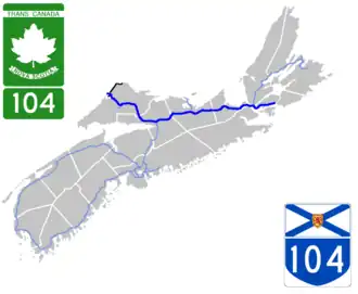 Der Highway 104 in der ostkanadischen Provinz Nova Scotia ist zu einem Großteil Bestandteil des Trans-Canada Highway-Systems. Er beginnt an der Grenze zu New Brunswick und endet auf Cape Breton Island in St. Peter’s. Die Route hat eine Länge von 311 km.[1]