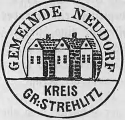 Bei der Volksabstimmung in Oberschlesien am 20. März 1921 stimmten 30 Wahlberechtigte für einen Verbleib bei Deutschland und 69 für Polen[2]. Neudorf verblieb beim Deutschen Reich. Bis 1945 befand sich der Ort im Landkreis Groß Strehlitz.