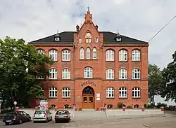 - Das Schulgebäude am Plac Koscielny wurde 1899 erbaut. Das Gebäude steht seit 2001 unter Denkmalschutz.[10]