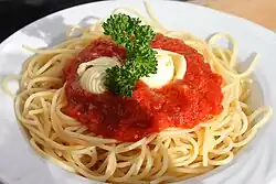 Nudeln mit Tomatensauce (pasta al pomodoro ‚Nudeln mit Tomate‘) sind ein erster Gang der italienischen Küche. In deutschsprachigen Speisekarten wird dieses Gericht oft unter dem Phantasienamen „Spaghetti alla napoletana“ oder „Spaghetti Napoli“ angeboten.