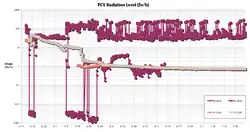 - ↑ a b c Ab dem 9. April wurde hier „defektes Messgerät“ (計器不良, keiki furyō) gemeldet, ab dem 17. April für beide Messkanäle A und B.