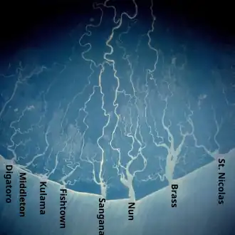 ![]() Beschriftete Satellitenaufnahme des Nigerdeltas | ||