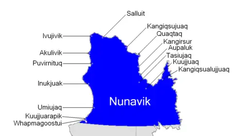 Nunavik (Inuktitut ᓄᓇᕕᒃ) ist der nördlichste Teil sowohl der Labrador-Halbinsel als auch der kanadischen Provinz Québec, wo es zur Verwaltungsregion Nord-du-Québec gehört. Das jenseits des 55. Breitengrades gelegene etwa 510.000 Quadratkilometer große Landareal wird umschlossen von der Provinz Neufundland und Labrador im Osten, der Hudsonstraße und der Ungavabai im Nordosten und der Hudson Bay im Westen. Durch die Hudsonstraße ist Nunavik vom gegenüberliegenden Inuit-Territorium Nunavut getrennt. Auch Nunavik wurde mit besonderen Rechten für die dort lebenden Inuit ausgestattet.