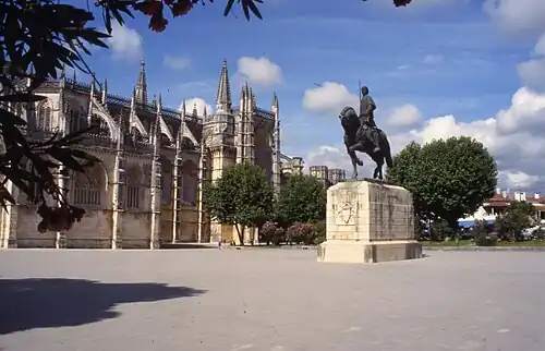 Nach der Revolution von 1383 befand sich Portugal in einer schwierigen Auseinandersetzung mit dem benachbarten Königreich von Kastilien. In Portugal war mit König Ferdinand I. der letzte Herrscher aus der Dynastie der Burgunder ohne männlichen Erben verstorben. Über Ferdinands Tochter, die mit König Johann I. von Kastilien verheiratet war, hätte Portugal eigentlich als Erbschaft an die kastilische Krone fallen sollen. Dagegen revoltierte die portugiesische Bevölkerung. Johann von Avis, ein nichtehelicher Halbbruder Ferdinands, setzte sich an die Spitze des Aufstandes. Als Kastilien mit einer großen Streitmacht nach Portugal einfällt, erklärt ihn die Cortes, das portugiesische Adelsparlament, zum „Verteidiger des Vaterlandes“. Nuno Álvares Pereira stand als Heerführer loyal auf der Seite Johanns von Avis. Er wird als ebenso fromm wie als begnadeter Stratege und Taktiker beschrieben. 1385 kam es zur Entscheidung, als die kastilischen und portugiesischen Heere in der Schlacht von Aljubarrota aufeinander trafen. Dabei waren die Kastilier den Portugiesen zahlenmäßig überlegen und besser bewaffnet. Trotzdem gelang es den Portugiesen, einen überwältigenden Sieg zu erringen, was besonders dem strategischen Genie des Nuno Álvares Pereira zugeschrieben wird.